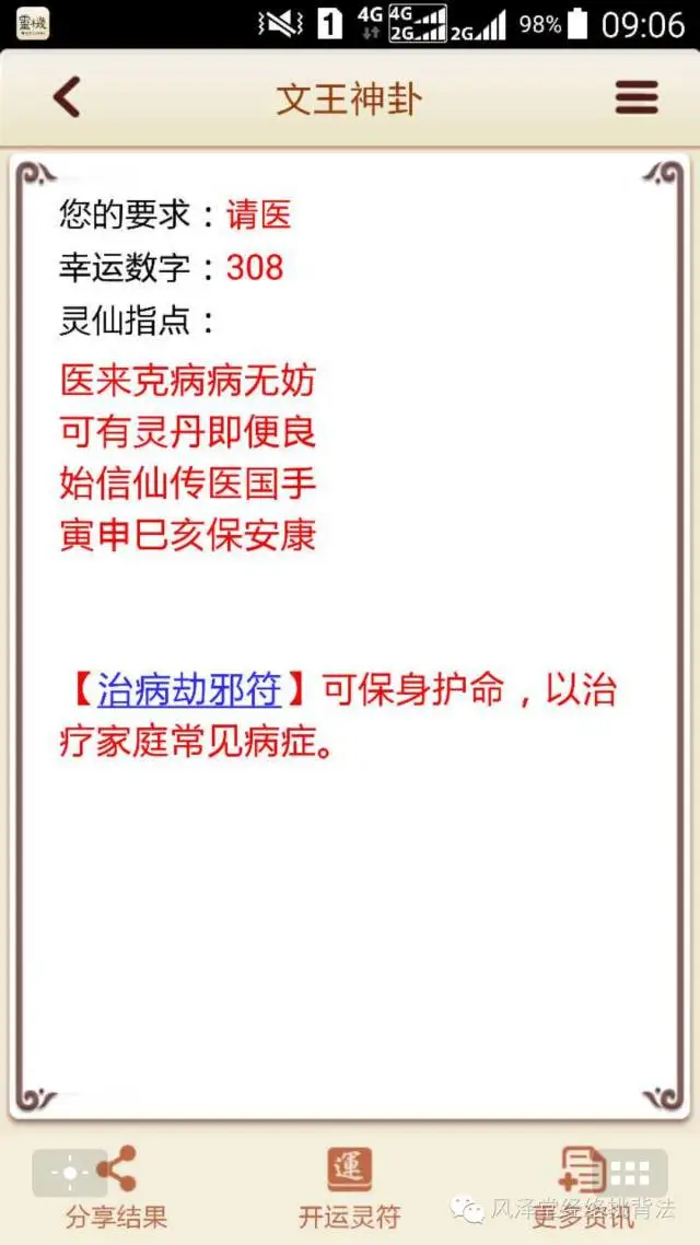 第二天去医院探视,还在输液,心脏心率依旧。朋友是周易好手,得卦如下图截屏: